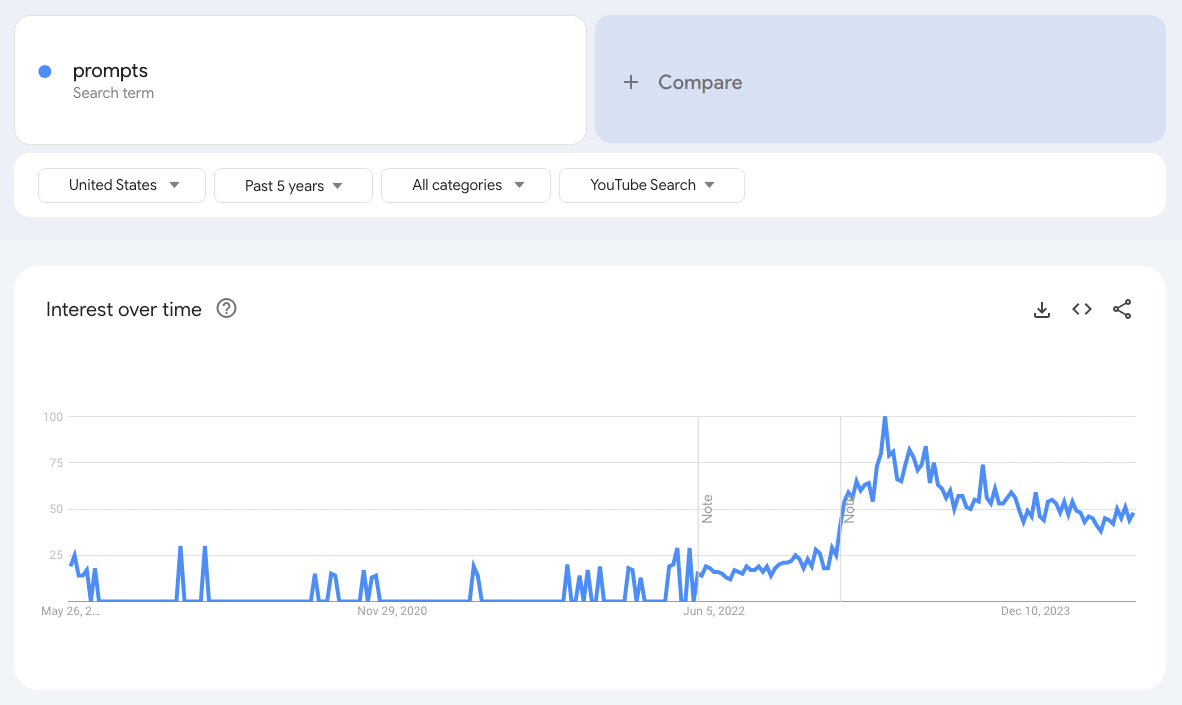 [YouTube Search Trends for the word "prompts" over the last 5 years]